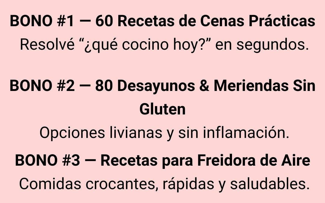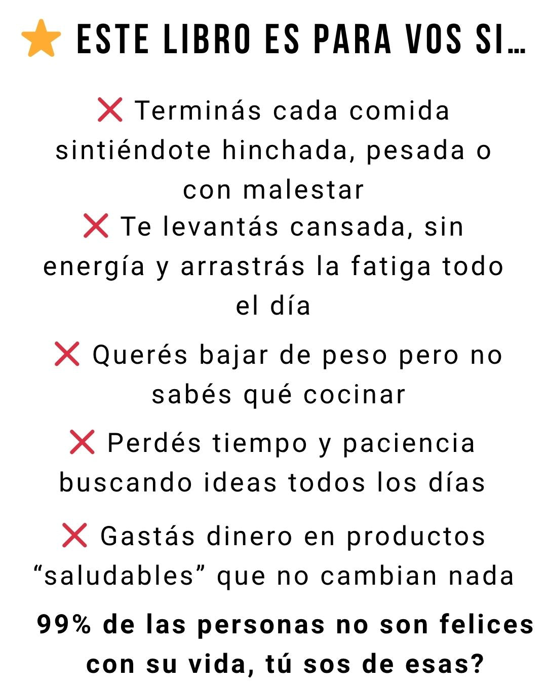 “Hace años vivía hinchada y cansada. Cambié mis comidas con este libro y hoy me siento liviana todos los días. Un antes y un después total.”